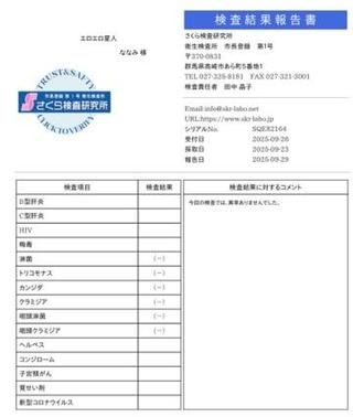 からの今日はゲーム三昧だ〜って思ったけどやっぱり疲れちゃうから1日中ゲームできる人すごいやそういえば久しぶりお天気よくてやっと気持ちよーく外干しできて幸せでもまた雨の日もチラホラあるからイヤになっちゃうね雨女なので晴れを呼ぶことができません誰か太陽さん連れてきてください【先月の性病検査】先月もオールクリアでしたいつも楽しく安全に遊んでくださるお兄さんには感謝の気持ちでいっぱいですお兄さんも大切な人を守るためにも定期的な検査をぜひお願いします明日は出勤ですのでよろしくお願いしますでわでわ、おやすみなさいお誘いくださったお兄さんへお願いがあります