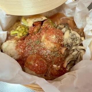 ついでに今日食べた蒸籠蒸しお野菜と肉団子のトマト煮